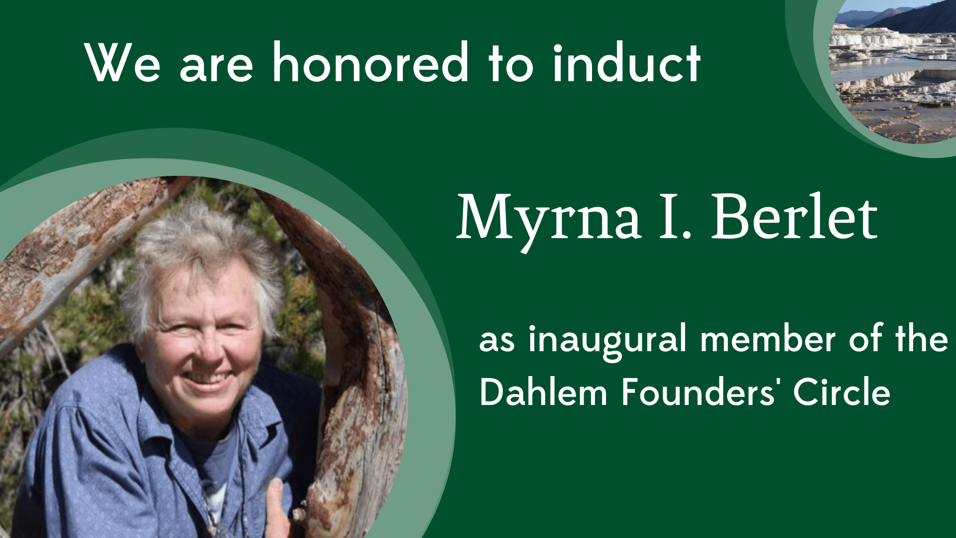 It is with a deep sense of gratitude that Dahlem accepts the first payment from the Berlet Fund for Nature at the Dahlem Conservancy that will be held in the Jackson Community Foundation; and that we announce that Myrna will be the first entrant in the newly created Dahlem Conservancy Founders Circle recognizing those who have remembered Dahlem in their estate and trust planning as Myrna did.”