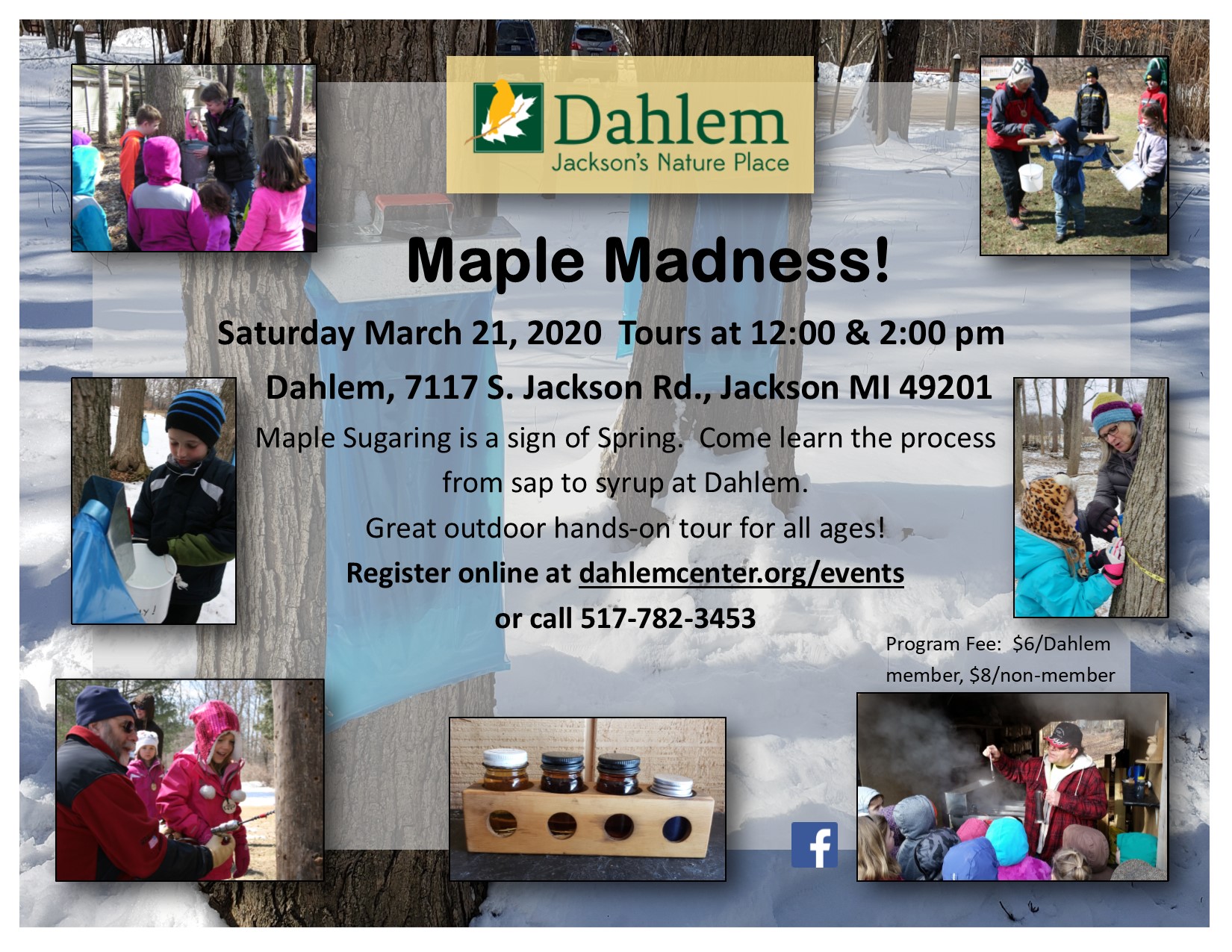 Fee: $6/Dahlem member; $8/non-member. Advanced registration required at www.dahlemcenter.org or call the office (517-782-3453) to pay for your spot. Registration deadline is Friday, March 20 at 12:00 pm.